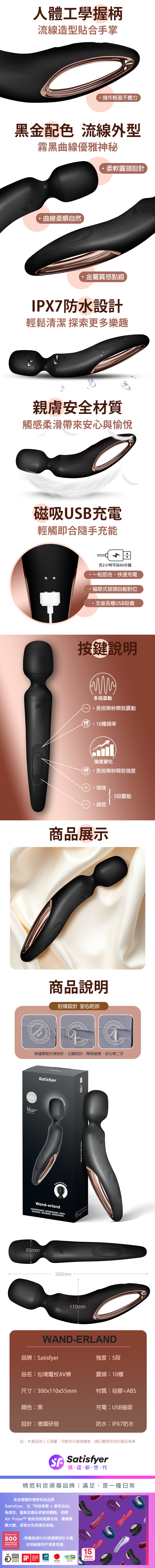 品名:Satisfyer|Wand-erland|仙境魔杖 AV按摩棒 黑